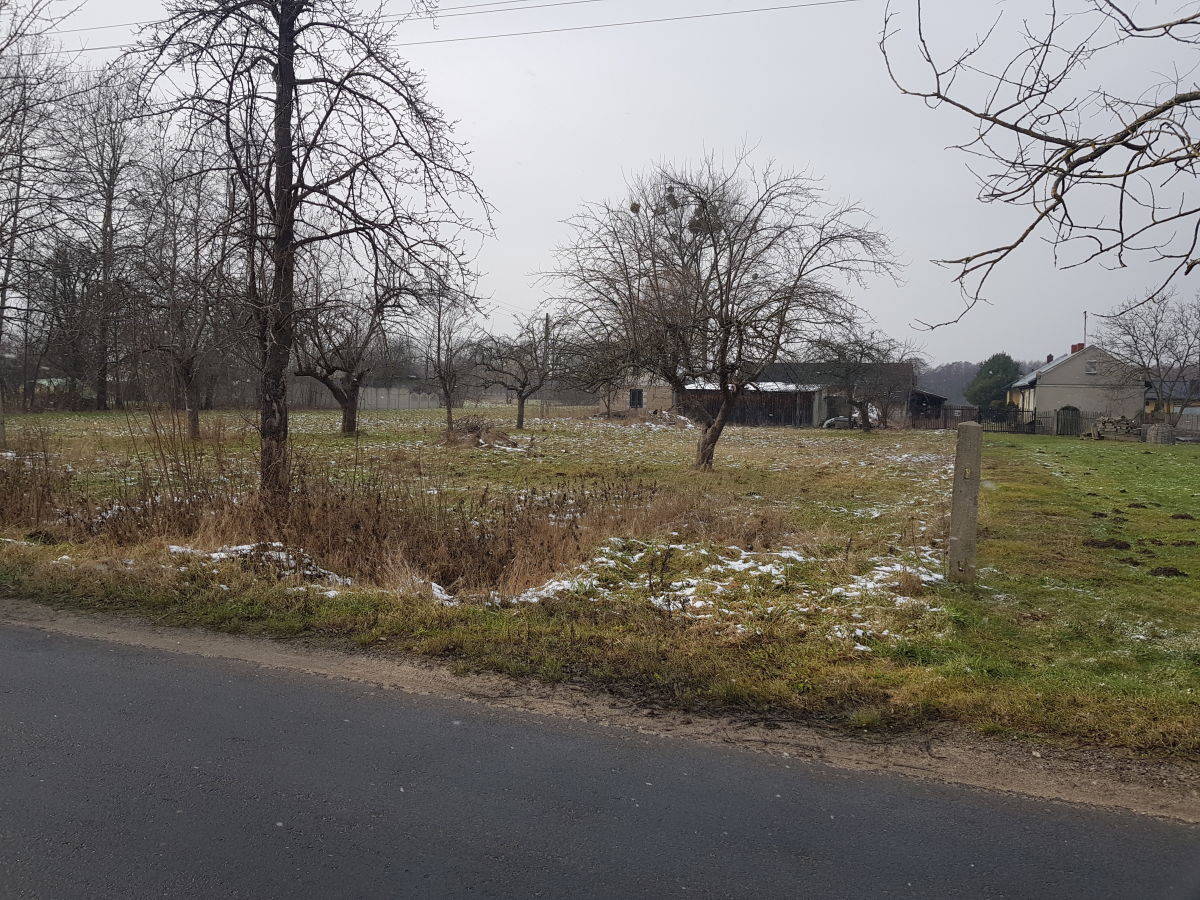 Zabudowania: murowany budynek gospodarczy i obora pokryte eternitem.