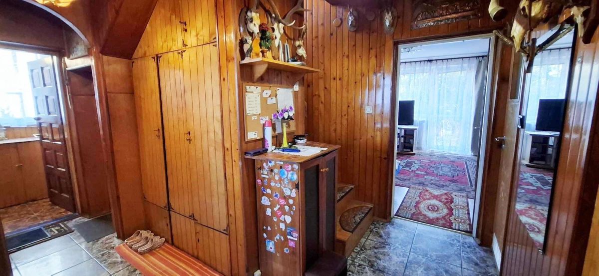 - przedpokój: podłoga terakota, ściany boazeria