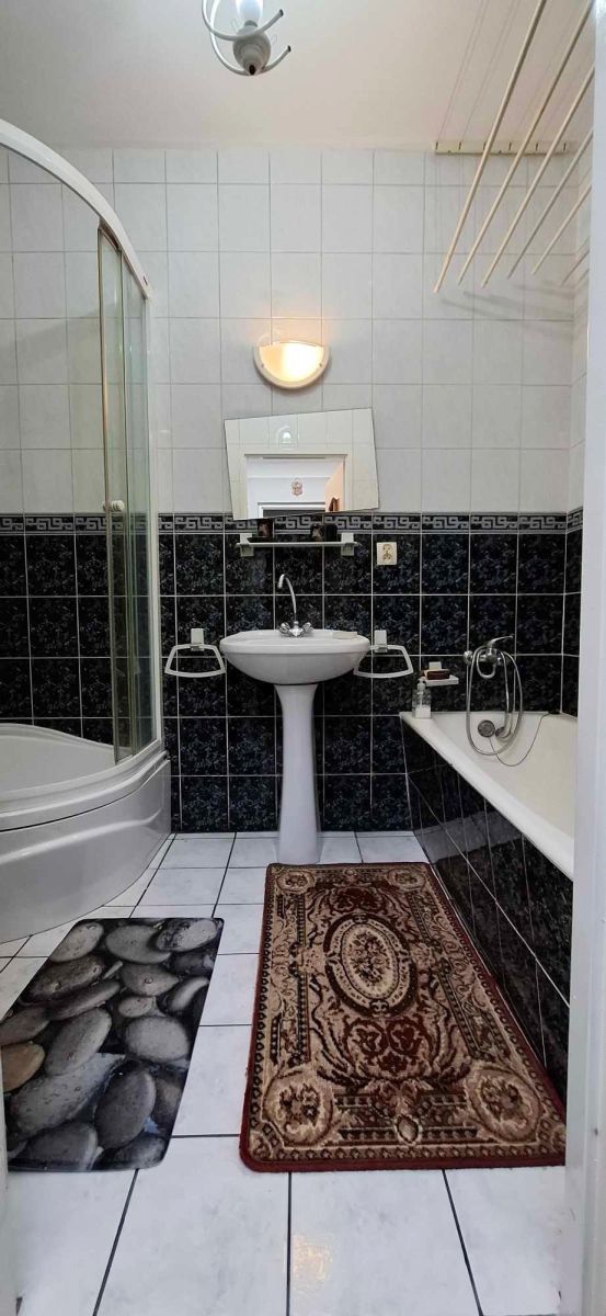 - łazienka z wc - ściany glazura, podłoga terakota, wanna plus kabina prysznicowa