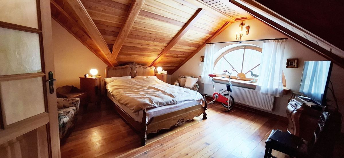 Polecamy do sprzedaży pięknie urządzony z wysokiej klasy materiałów dom niepodpiwniczony z poddaszem użytkowym o powierzchni mieszkalnej ok.280 m2, posadowiony na działce o powierzchni 17830 m2.