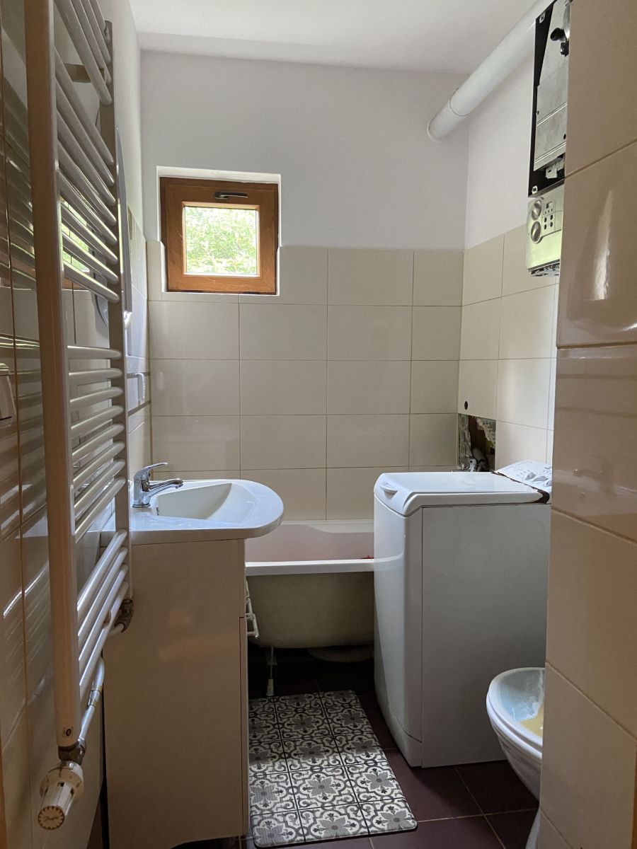 - łazienka z wc: podłoga terakota, ściany glazura i gładź, wanna