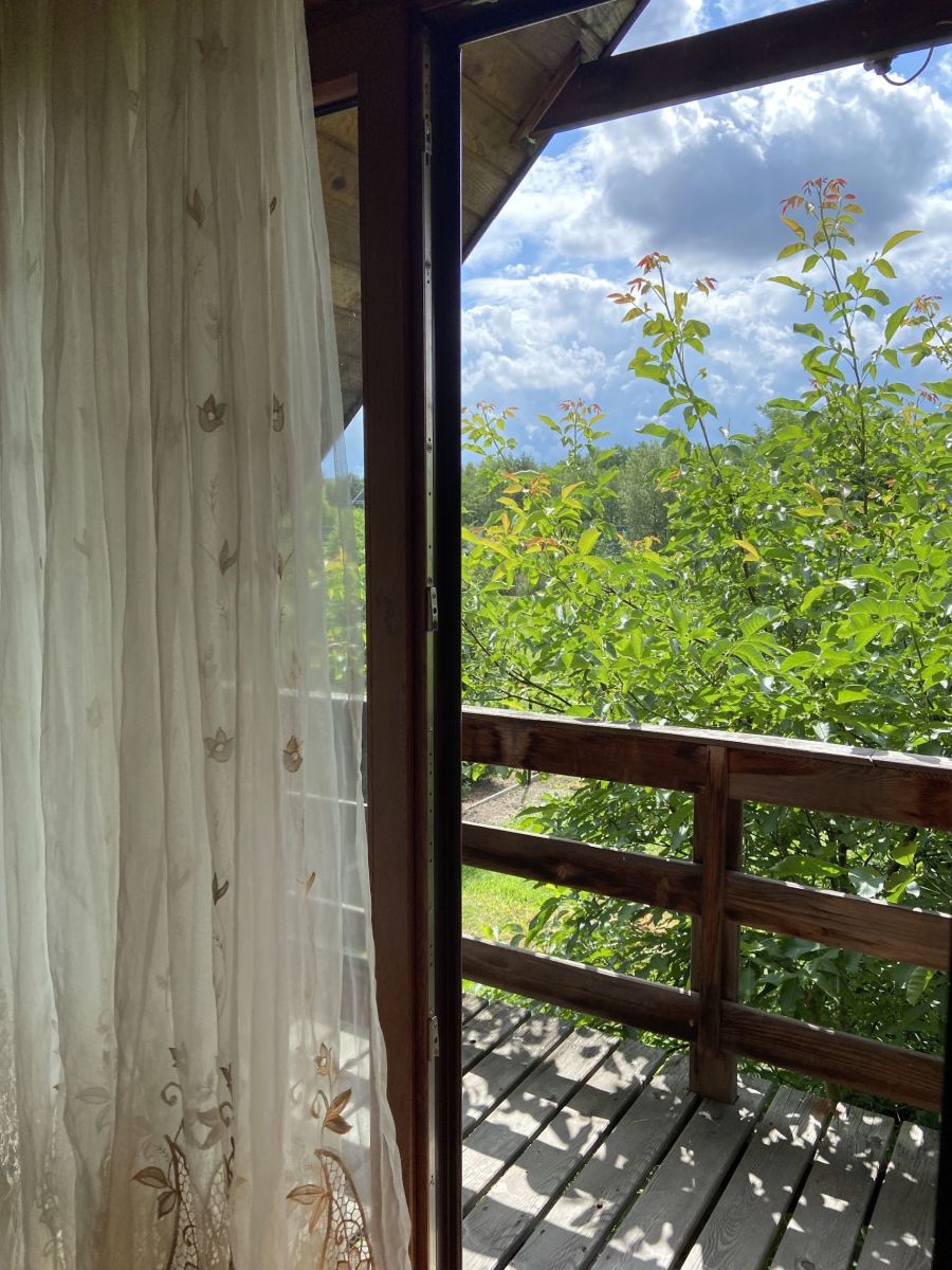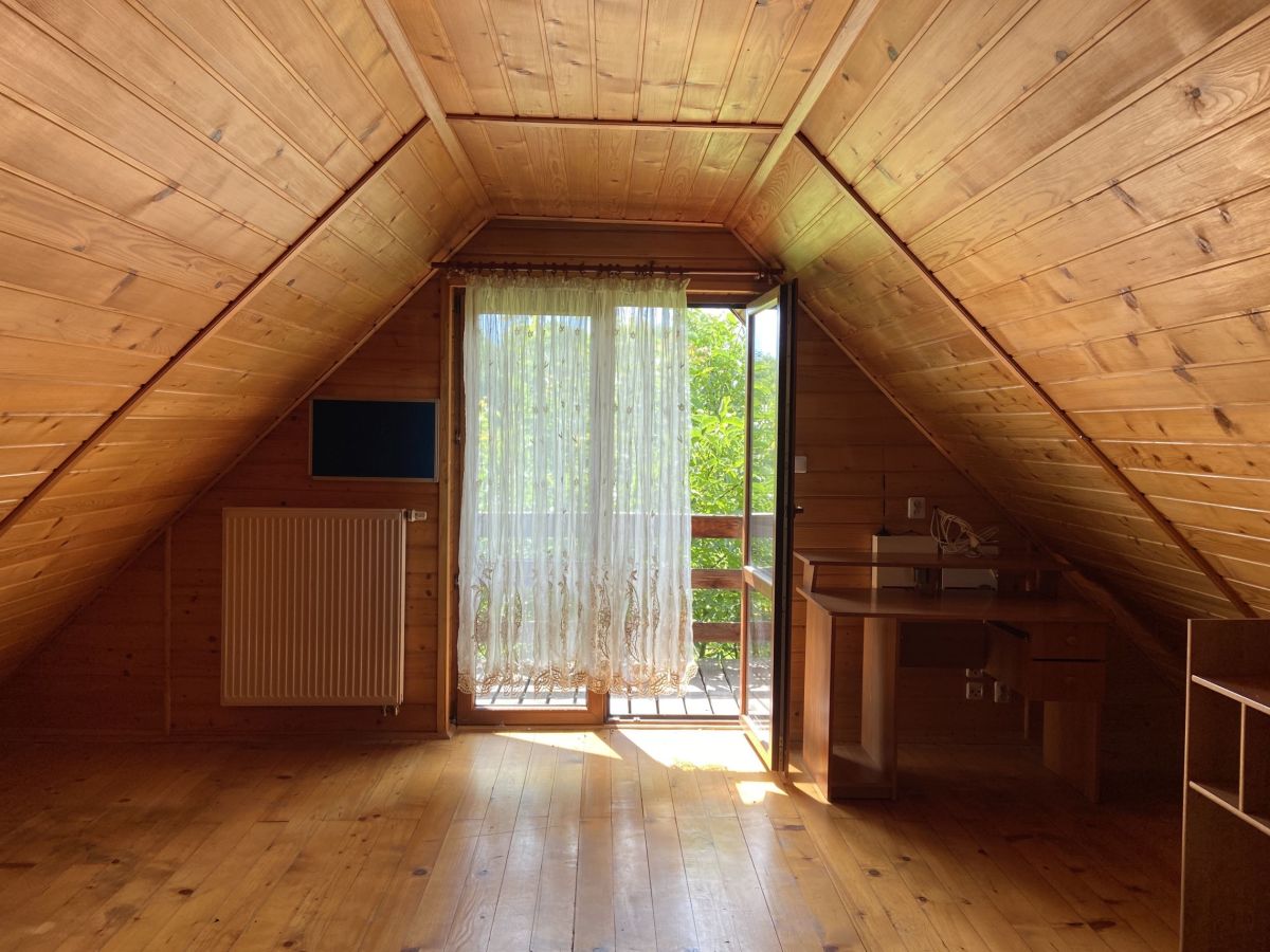 - pokój: podłoga drewno, ściany drewno, struktura, balkon