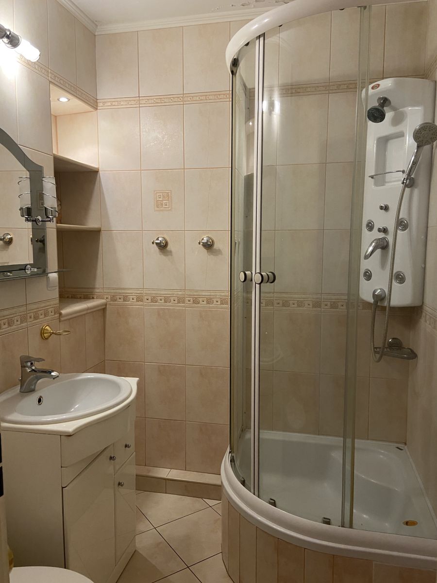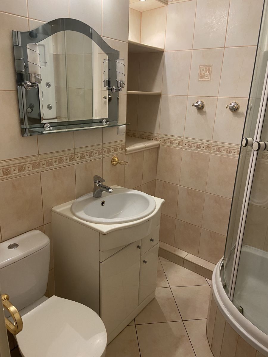 - łazienka z wc: podłoga terakota, ściany glazura, prysznic