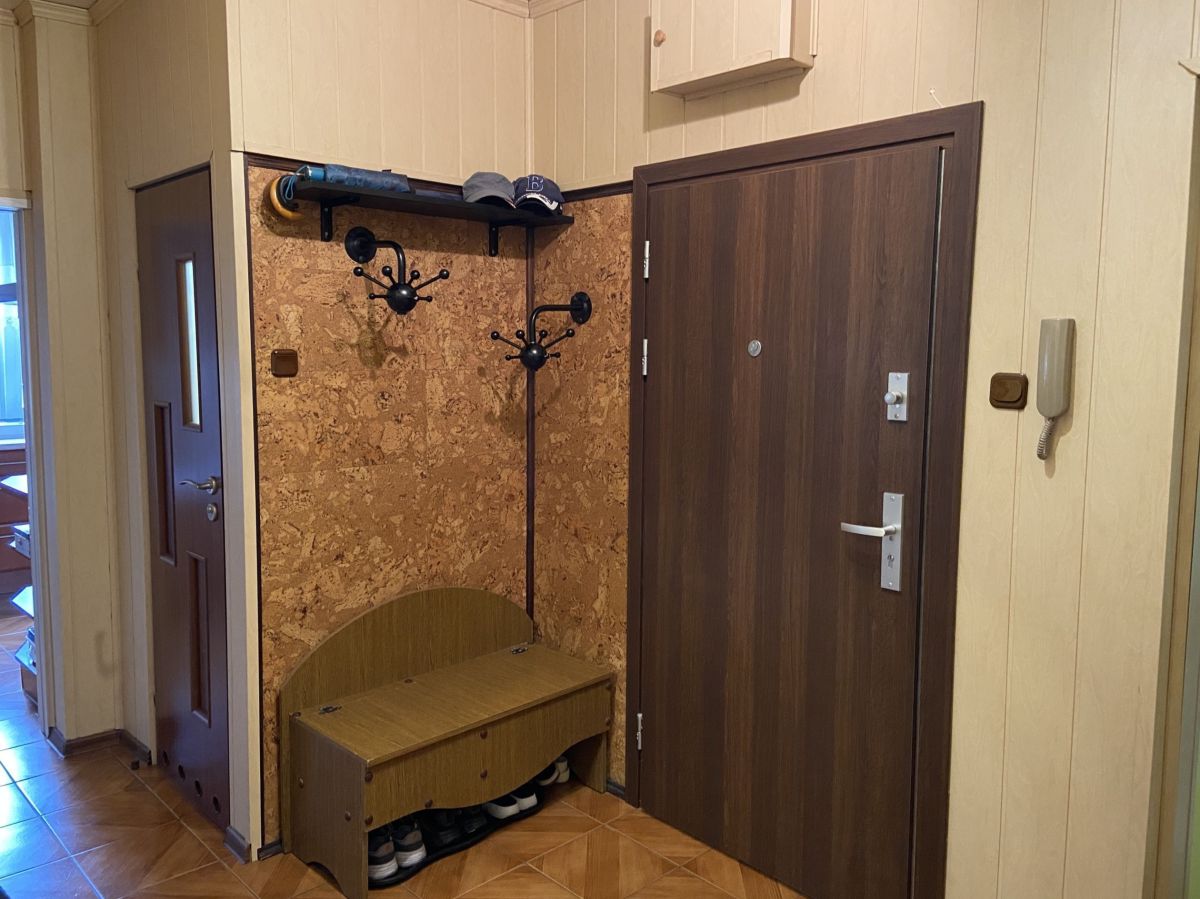 - przedpokój: ściany panel i korek, podłoga terakota, szafa wnękowa