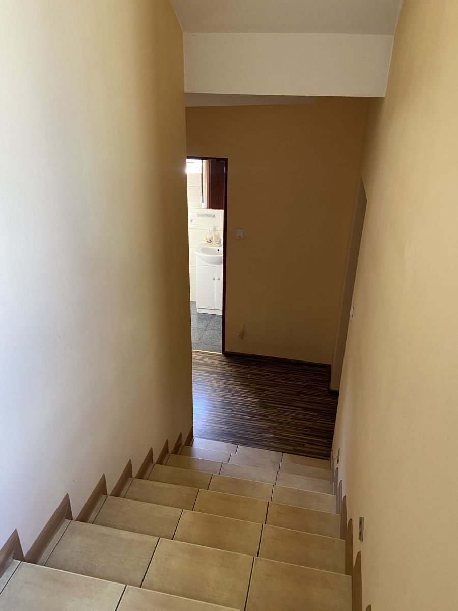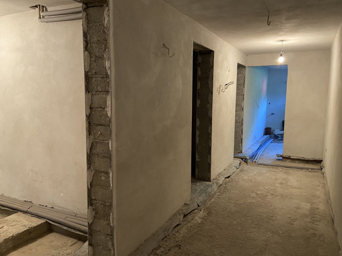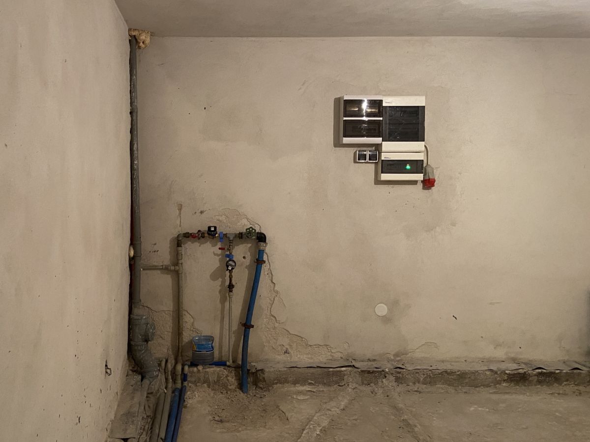 - po zejściu niżej: podłoga wylewka, ściany tynki, podział na pokoje, rozprowadzona instalacja elektryczna i hydrauliczna