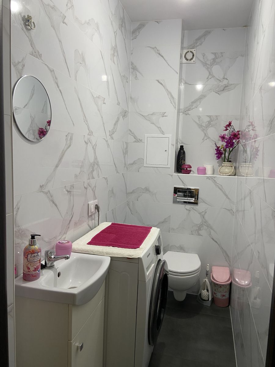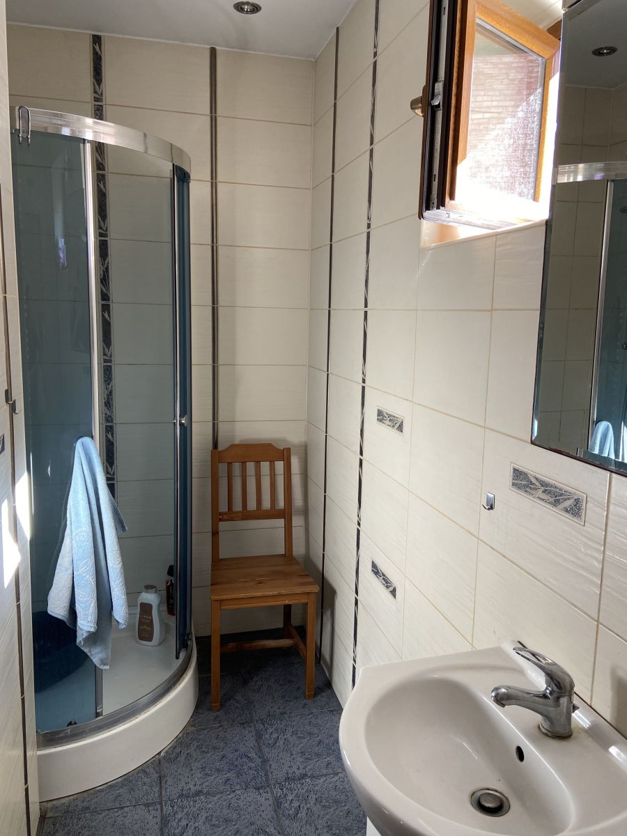 - łazienka z wc: podłoga terakota, ściany glazura, prysznic