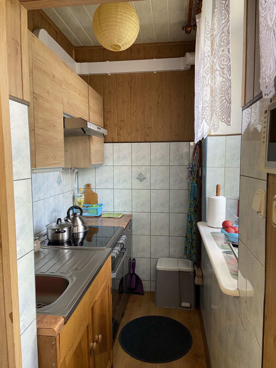 - kuchnia z jadalnią: podłoga panel, ściany glazura i panel