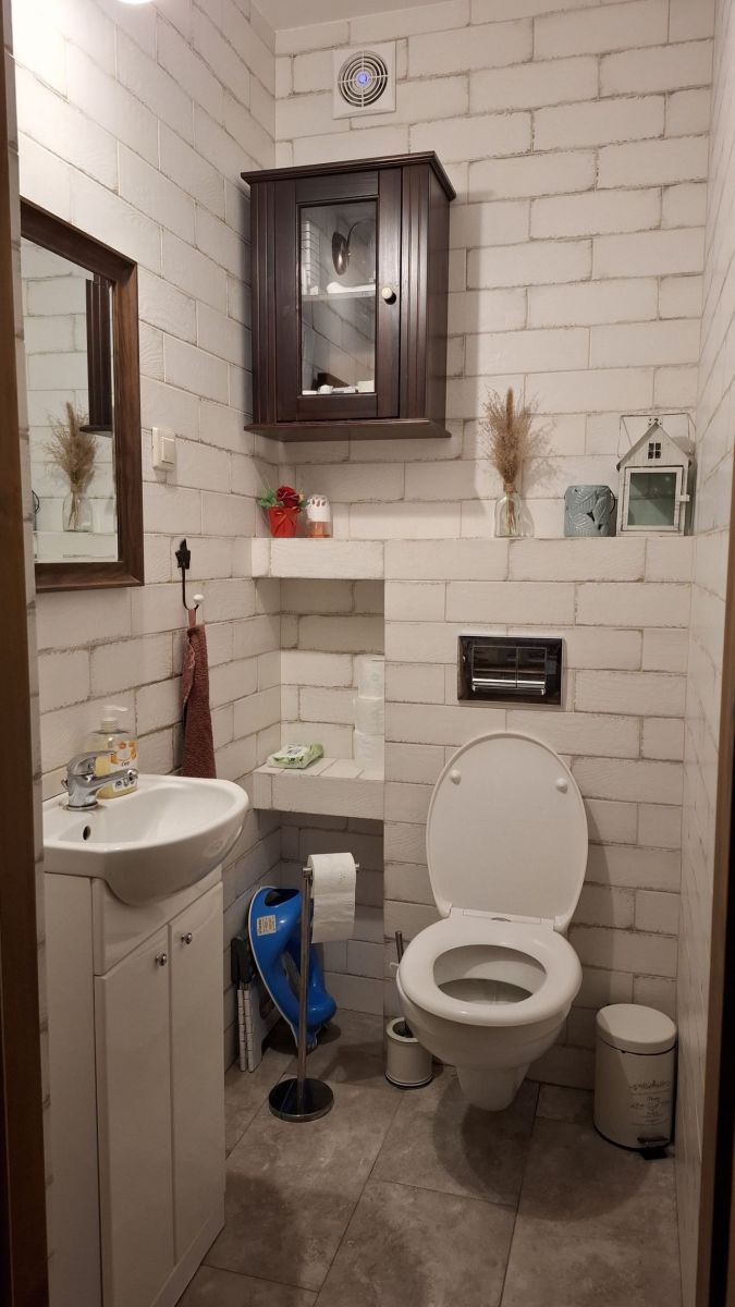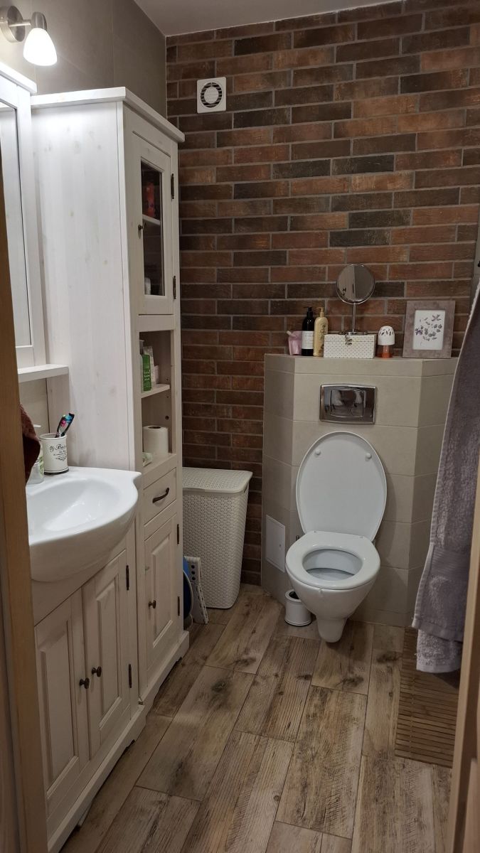 - wc: podłoga terakota, ściany glazura