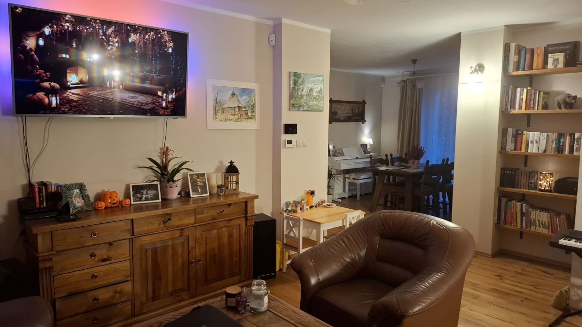 Media w budynku: prąd, siła, woda miejska, woda ciepła z pieca gazowego dwufunkcyjnego, gaz miejski, kanalizacja miejska, panele fotowoltaiczne niezależne od elektrowni (własne magazyny energii)
