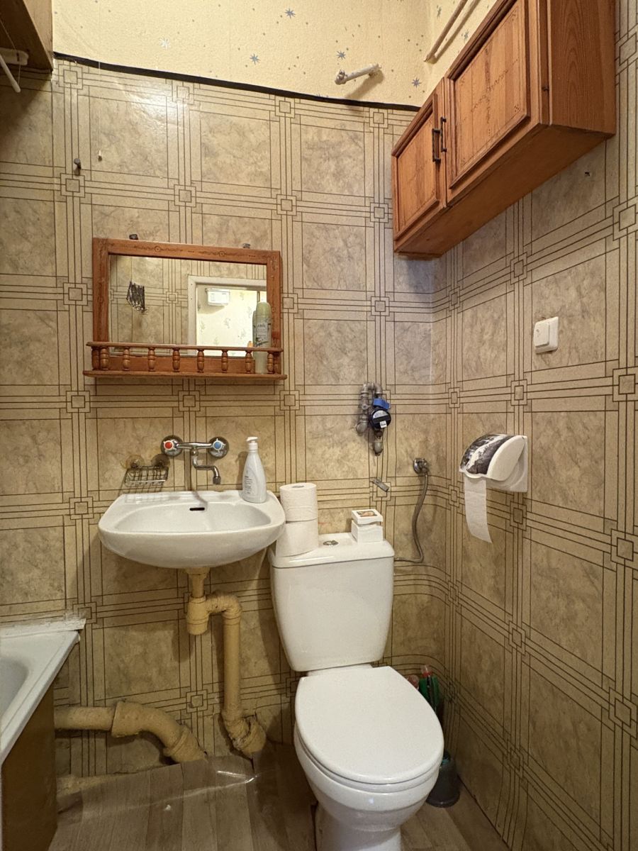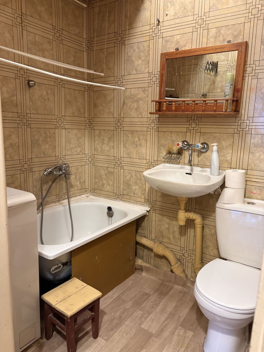 - łazienka: ściany tapeta, podłoga wykładzina PCV, wanna
