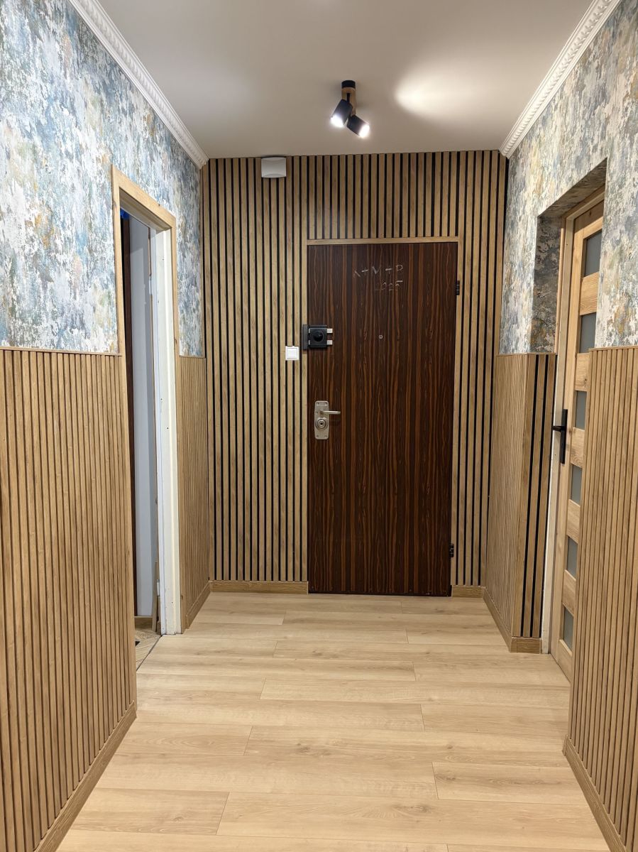 - przedpokój: podłoga panel, ściany tapeta i lamel