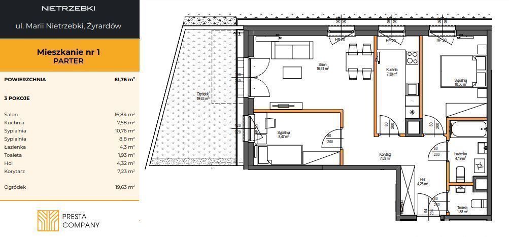 - ogródek 19,63m2 (ogródek nie wlicza się w metraż mieszkania)