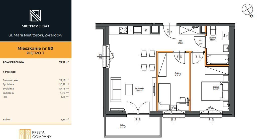 Nowoczesny, pięciopiętrowy budynek będzie znajdował się przy ulicy Marii Nietrzebki i obejmował 103 funkcjonalne mieszkania o metrażu od 29 do 80m2, zaprojektowane z myślą o komforcie codziennego życia. Lokale na parterze oferują przestronne, prywatne ogródki, natomiast mieszkania na wyższych piętrach posiadają balkony i loggie idealne do relaksu. Zielone, ogrodzone osiedle zapewnia poczucie prywatności i spokoju, a garaże podziemne podnoszą wygodę mieszkańców.