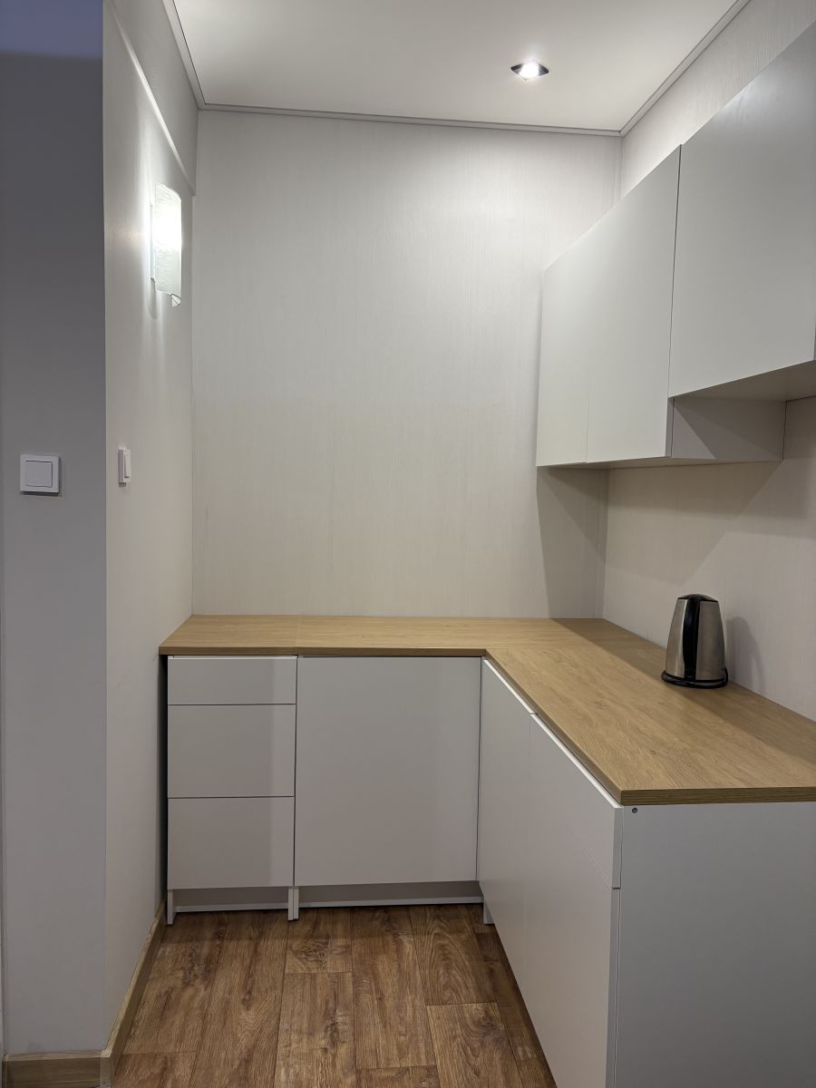 - aneks kuchenny 3m2: podłoga panel, ściany tapeta i gładź malowana