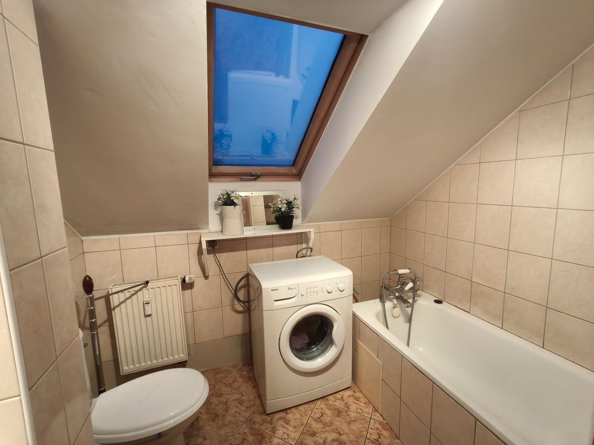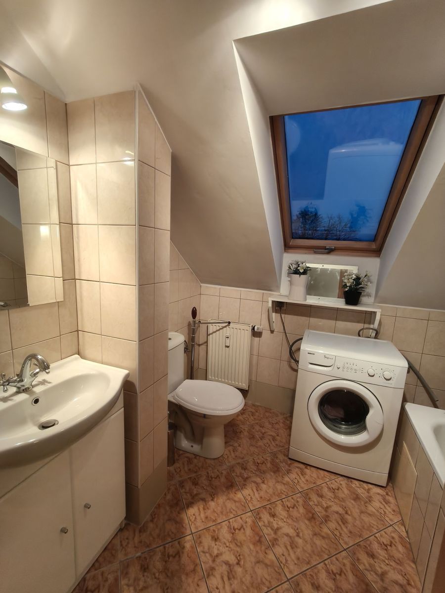 - łazienka z wc: ściany glazura, podłoga terakota, wanna