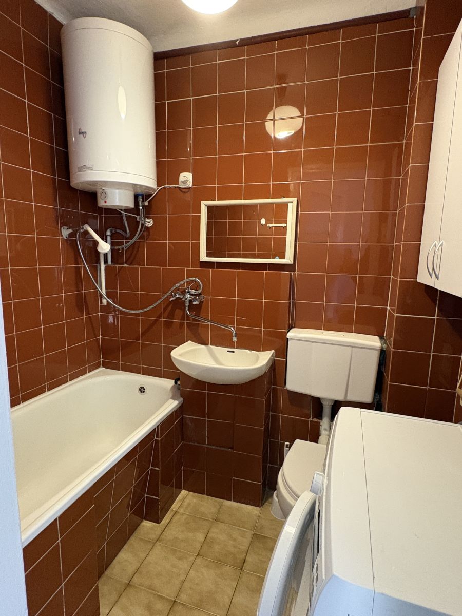 - łazienka z wc: ściany glazura, podłoga terakota, wanna