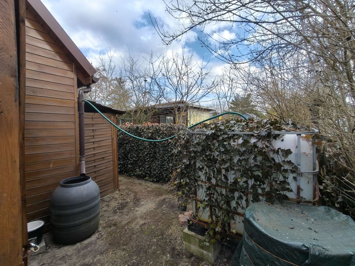 Na działce znajdują się cztery zbiorniki do zbierania deszczówki.